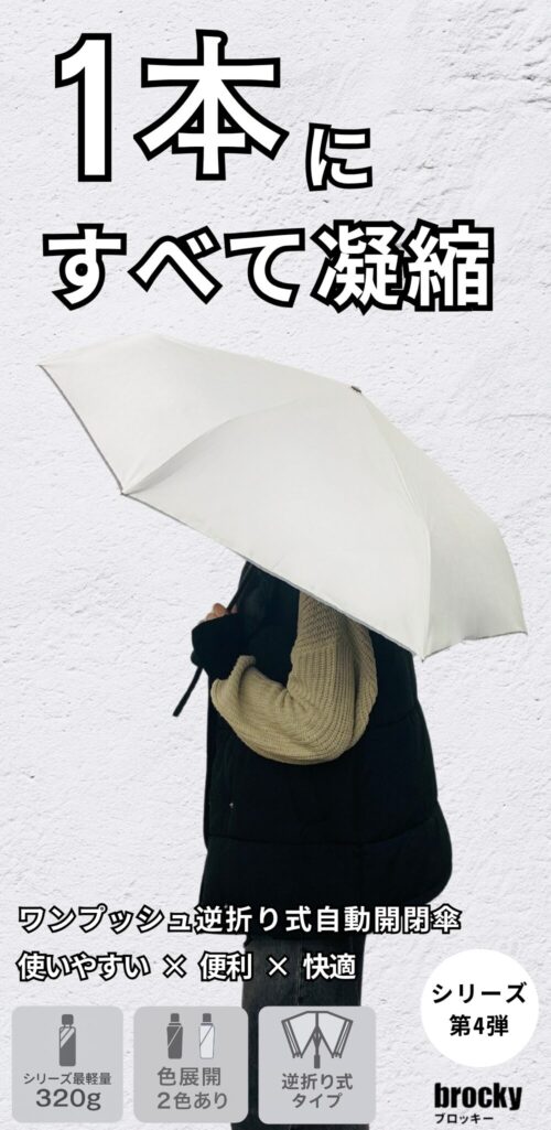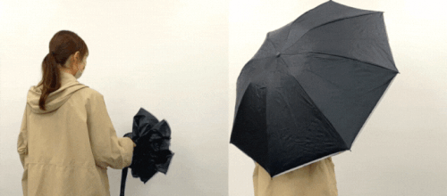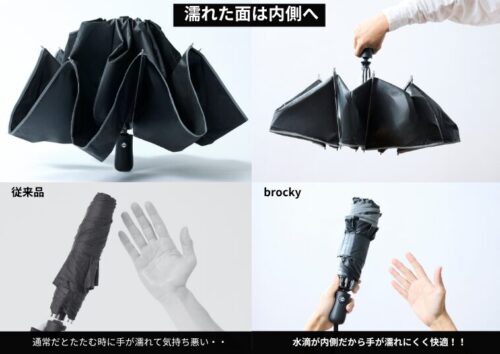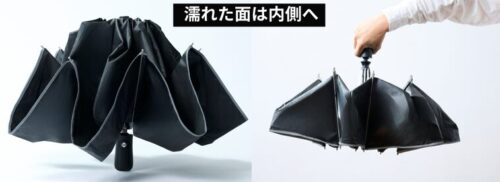 ・濡れた面を内側に閉じ込める逆折りたたみ式で、自分も周囲も濡れにくい設計