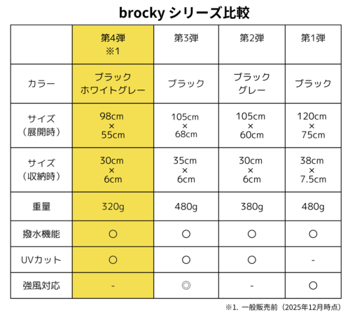 傘の直径を120cmから98cmへ変更し、携帯性と実用性のバランスを最適化