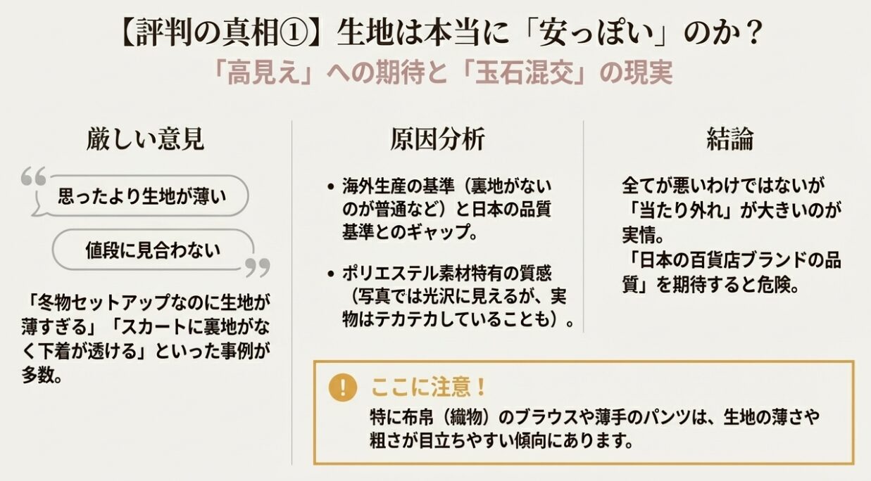 生地が安っぽいという評判は本当か